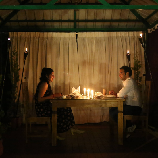 Beneath the stars, out looking at the mountains, amidst the silence and tranquility of nature, we have our Gazebo set up for you to plan your perfect romantic dinner for your partner.