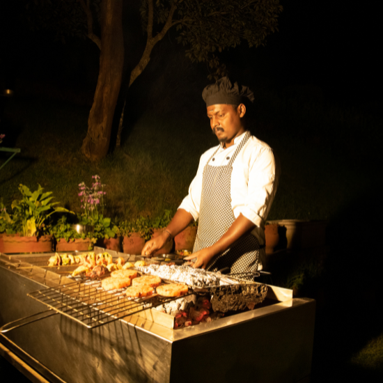 Smoking Hot Grills to beat the cold! We cater to groups, small & big,, at a nominal price with a barbeque grill station for you to indulge in non-vegetarian and vegetarian appetizers.
